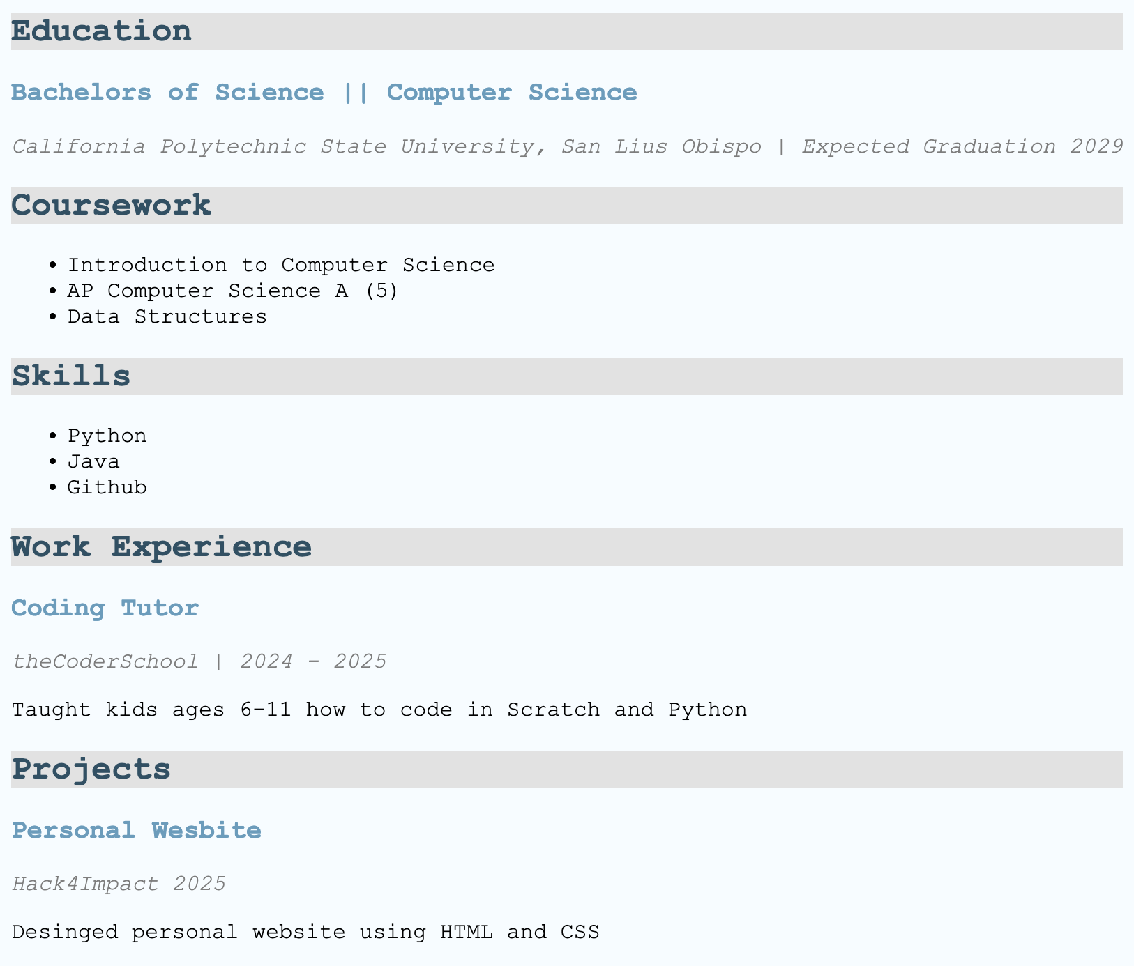 California Polytechnic State University, San Lius Obispo | Expected Graduation 2029
